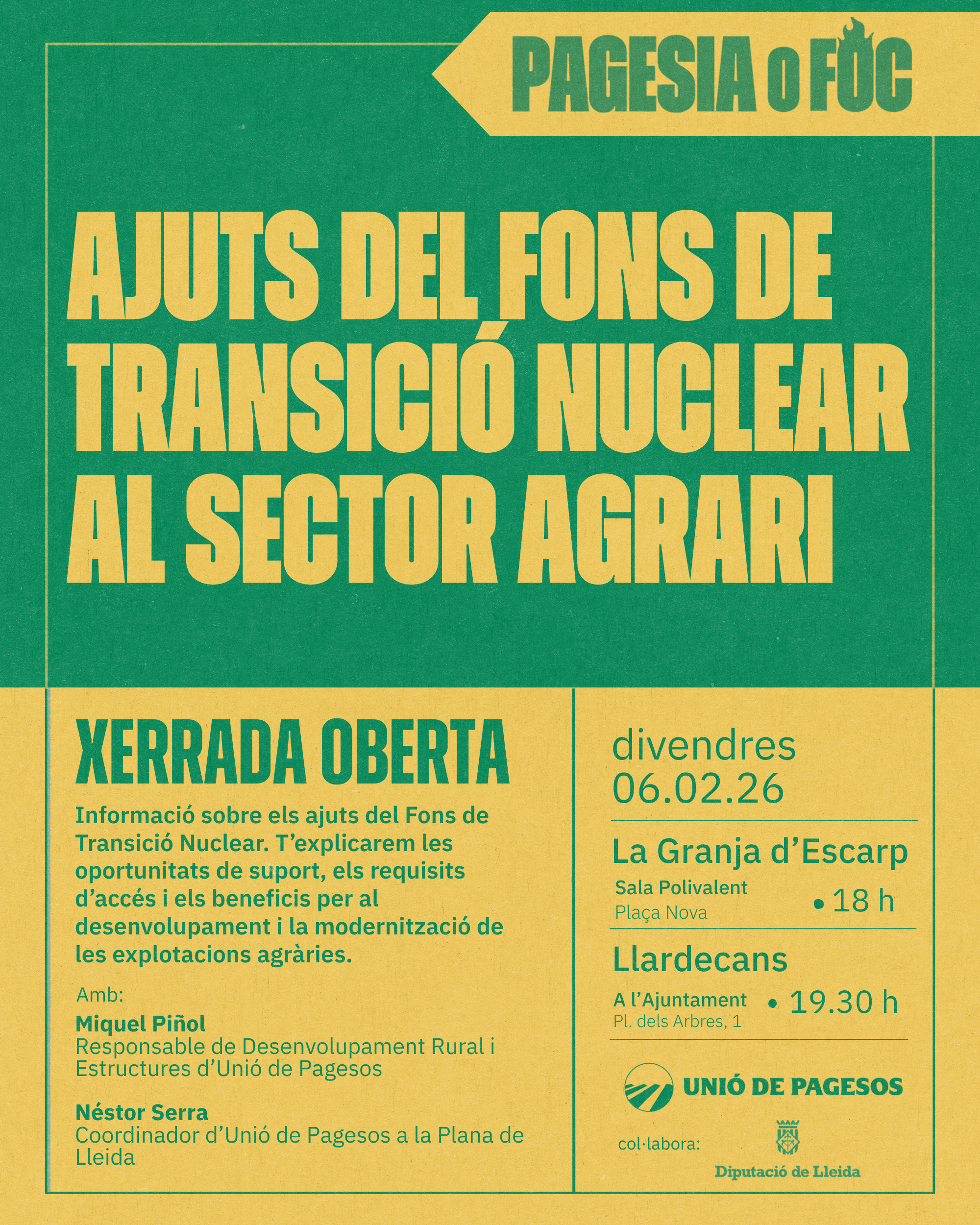 Unió de Pagesos de Catalunya    /    Actualitat    /    Agenda    /    Ajuts del Fons de Transició Nuclear al Sector Agrari – La Granja d’Escarp