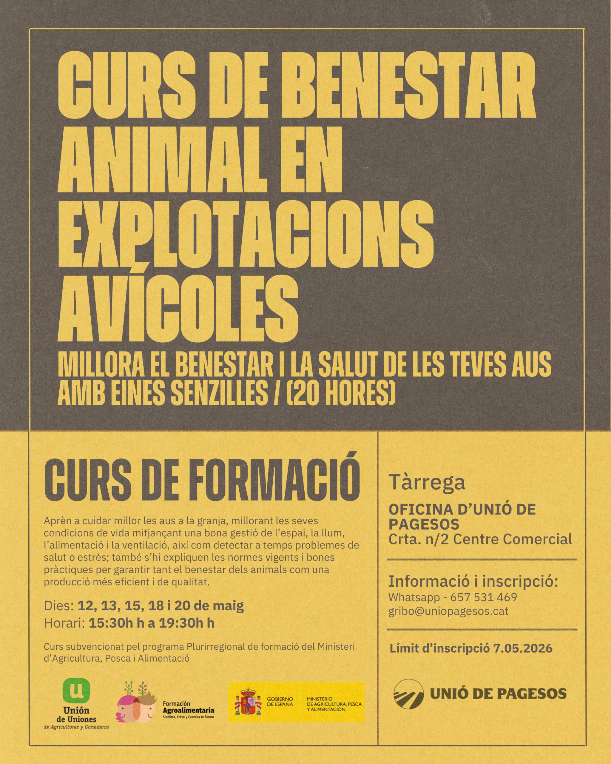 Contacteu amb Guillem Ribó . Cal enviar per e-mail gribo@uniopagesos.cat o Whatsapp 657531469
