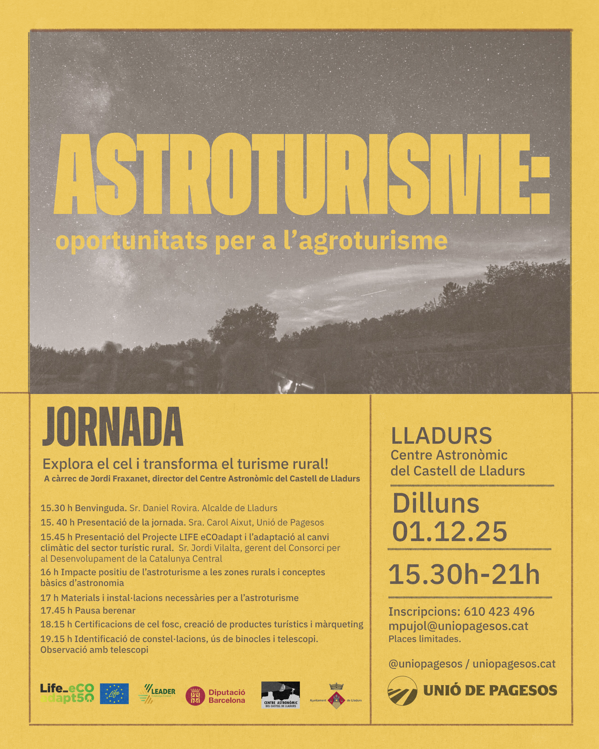 Unió de Pagesos de Catalunya    /    Actualitat    /    Agenda    /    Jornada. Astroturisme: una oportunitat per l’agroturisme. Lladurs