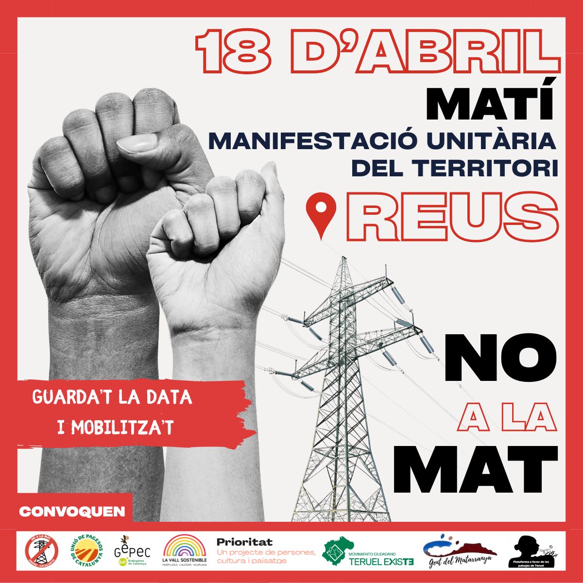Mobilització unitària a Reus. NO a la MAT Escatrón – Els Aubals – La Secuita