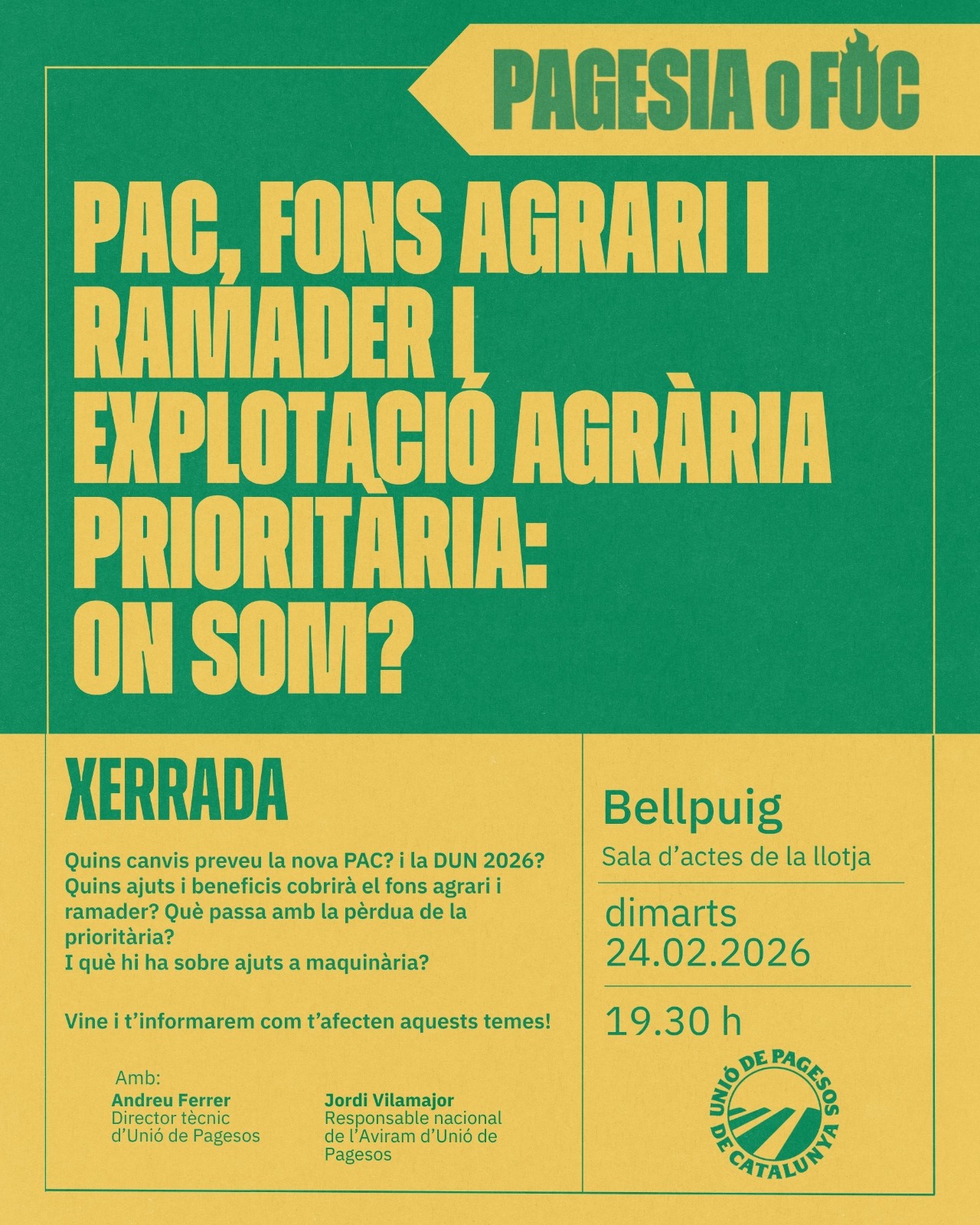 Quins canvis preveu la nova PAC? I la DUN 2026? Quins ajuts cobrirà el fons agrari i ramader? Que passa amb la pèrdua de la prioritària?