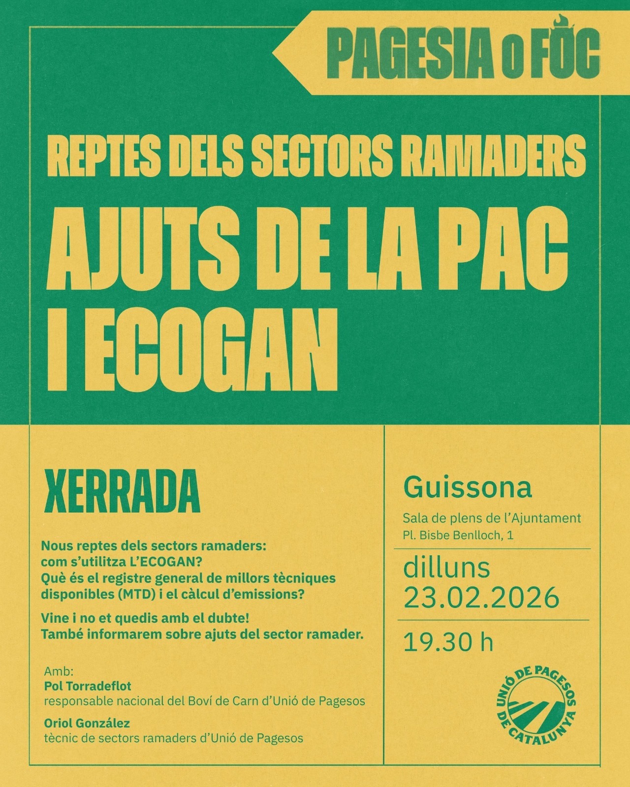 Unió de Pagesos de Catalunya    /    Actualitat    /    Agenda    /    Reptes sectors ramaders. Ajuts de la PAC i ECOGAN – Guissona