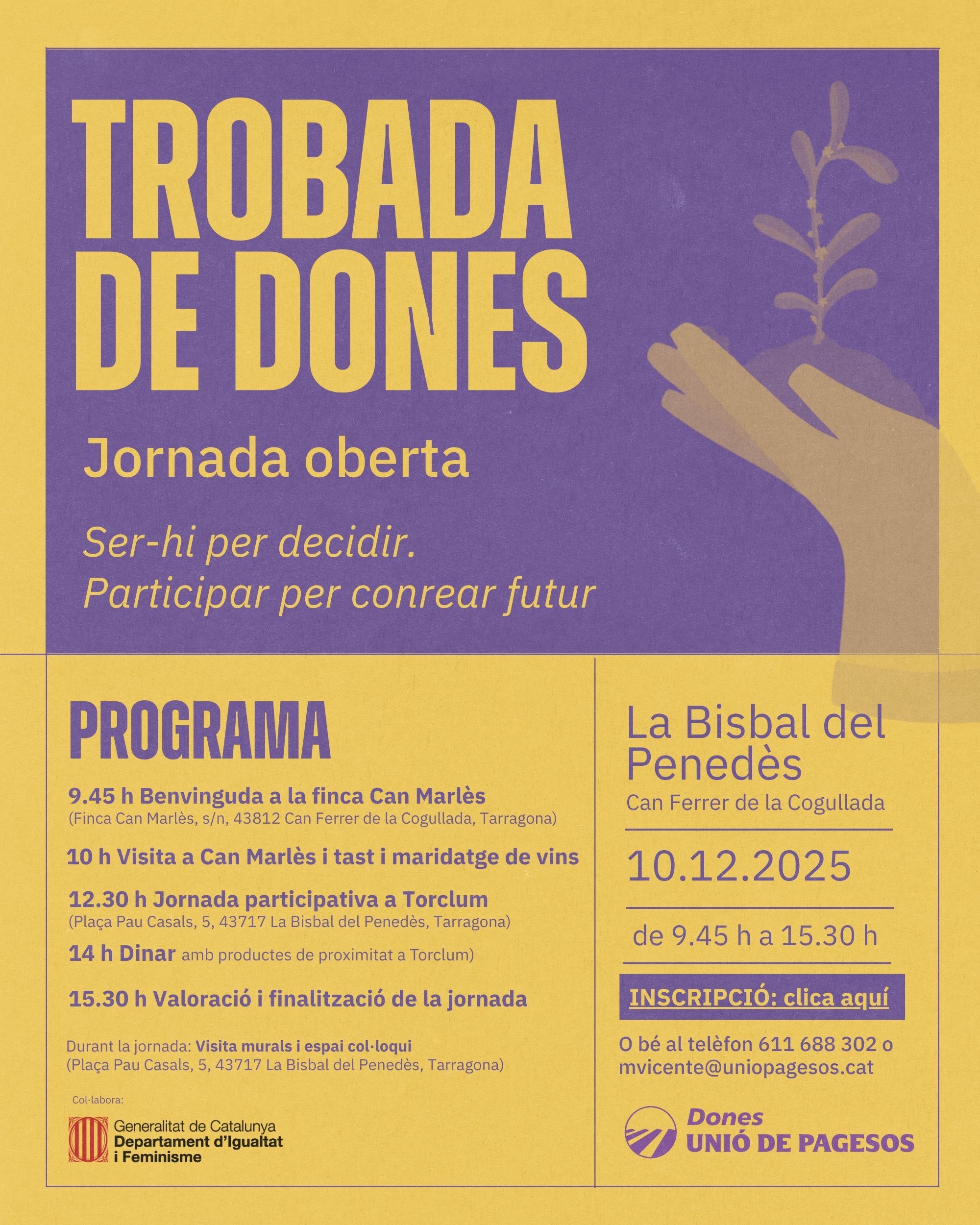 Des de Dones d’Unió de Pagesos hem preparat una jornada per gaudir, compartir i passar-ho bé.