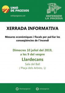 Unió de Pagesos de Catalunya    /    Actualitat    /    Agenda    /    Xerrada Informativa. Conseqüències de l’incendi a Llardecans