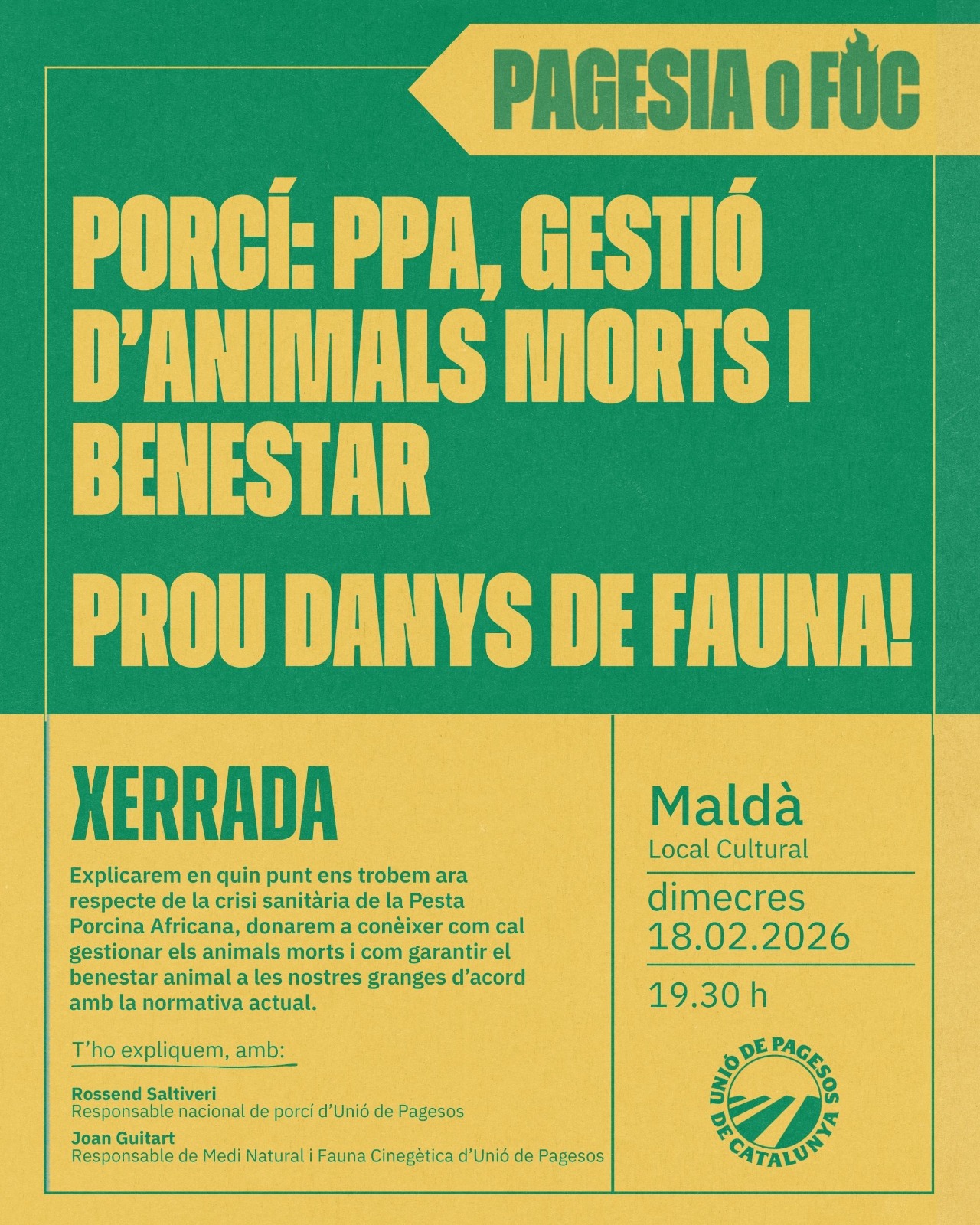 Unió de Pagesos de Catalunya    /    Actualitat    /    Agenda    /    PPA, Gestió d’Animals morts i Benestar Animal en porcí – Maldà