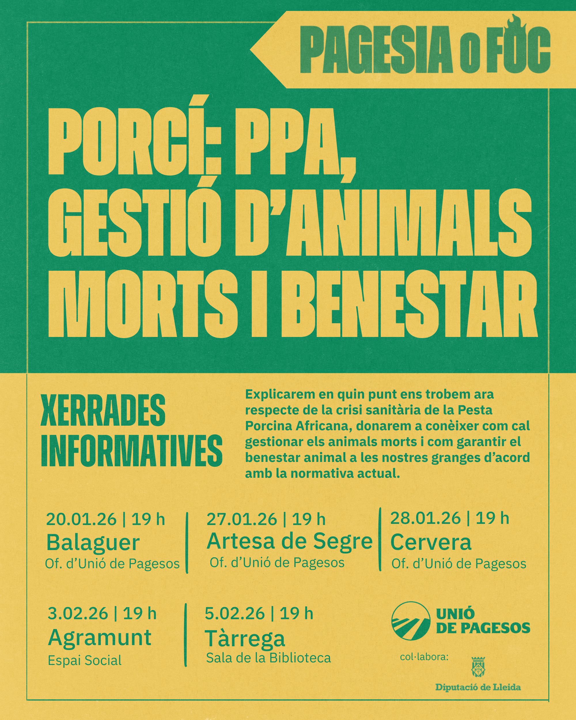 Unió de Pagesos de Catalunya    /    Actualitat    /    Agenda    /    Xerrada informativa sobre la Gestió d’animals morts i Benestar en Porcí – Tàrrega