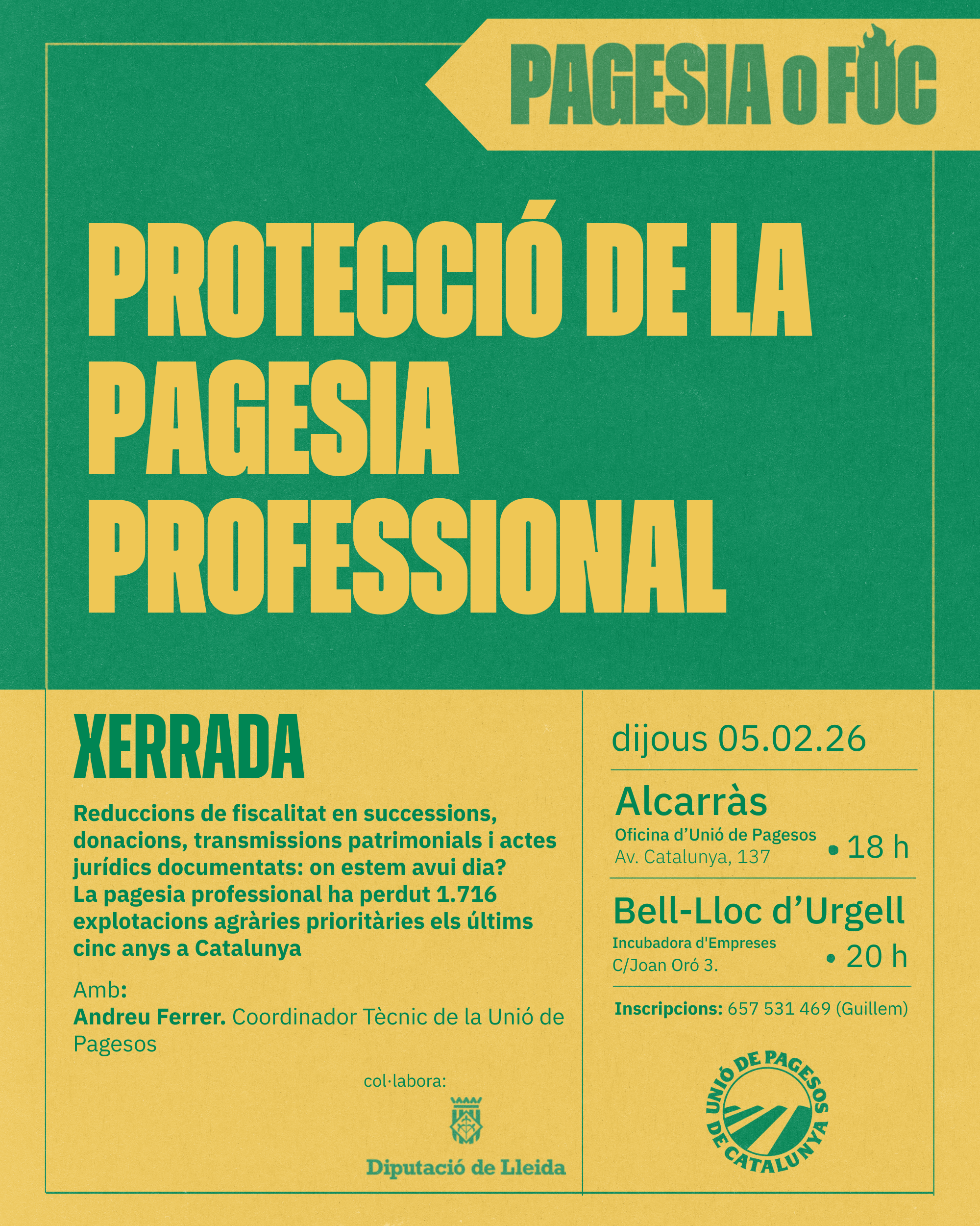 Unió de Pagesos de Catalunya    /    Actualitat    /    Agenda    /    Xerrada Informativa sobre Protecció de la Pagesia Professional. c